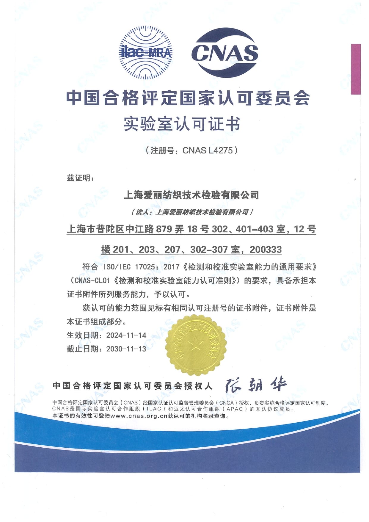 (注冊號:CNAS L4275)